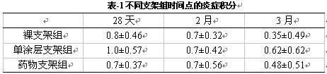豬冠脈定量形態(tài)分析結果見表-2,由表可見,3月時仍減少內膜增殖22%(P=0.09),表明具有極好抑制豬冠脈新生內膜作用,能減少支架內再狹窄。