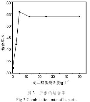 3.2.2 戊二醛質(zhì)量濃度對(duì)共混膜的肝素結(jié)合率的影響