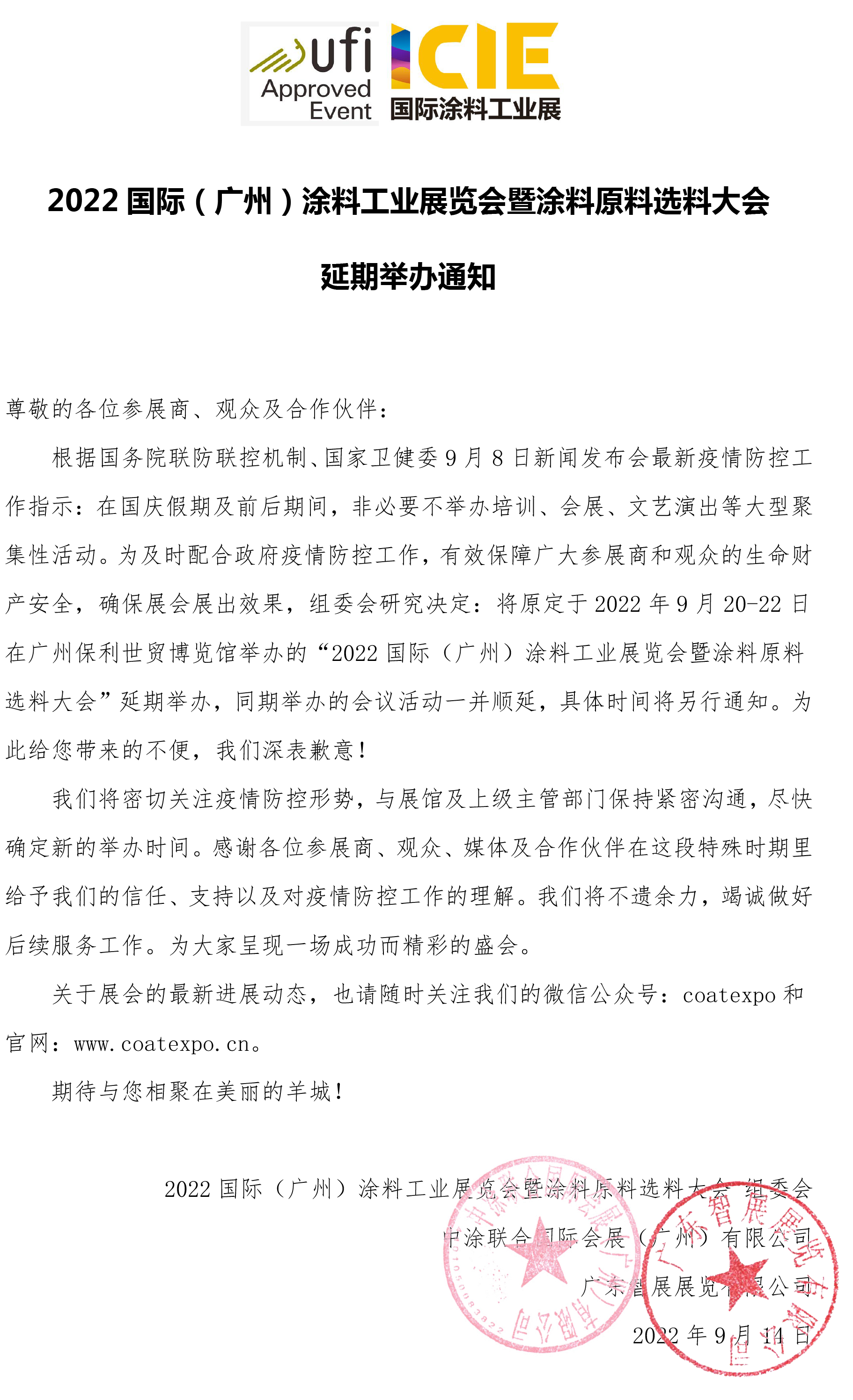 ?!DOCTYPE html PUBLIC "-//W3C//DTD XHTML 1.0 Transitional//EN" "http://www.w3.org/TR/xhtml1/DTD/xhtml1-transitional.dtd"> 2022国际Q广州)(j)涂料工业展览?x)暨涂料原料选料大会(x)延期丑֊通知_中国聚合物网