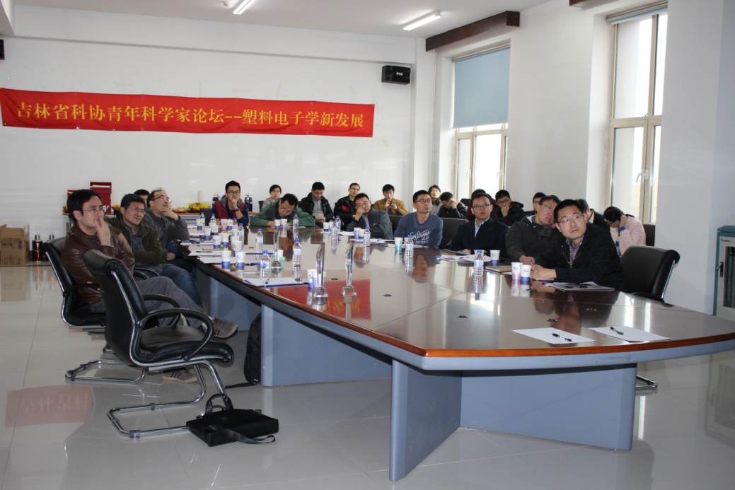 本次活動由高分子物理與化學國家重點實驗室的劉俊研究員主持,邀請了中國科學院長春光學精密機械與物理研究所的曲松楠研究員、東北師范大學的湯慶鑫教授、吉林大學的劉宇教授和李峰教授、中國科學院長春應用化學研究所的丁軍橋研究員、童輝研究員和劉俊研究員。與會者圍繞塑料電子學領域的關鍵問題,面臨的機遇與挑戰(zhàn),展開了深入討論,分別以《可見區(qū)全譜段發(fā)光碳納米點的制備及應用》、《大面積三維表面隨形貼合電極及其微納單晶場效應器件》、《全溶液加工型多層單色和白色磷光器件組裝》、《雙極性磷光材料的設計及其電致發(fā)光性能研究》、《突破OLED內量子效率25%上限的新思路-利用中性共軛自由基的雙重態(tài)激子發(fā)光》、《超支化共軛聚合物納米粒子的端基調控及其熒光傳感研究》、《含硼氮配位鍵的高分子電子受體材料》為題,做了專題報告。本論壇的舉辦對促進塑料電子學發(fā)展具有重要意義。