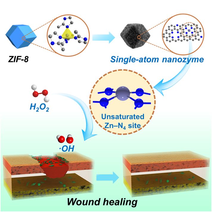 圖1. ZIF-8衍生的單原子納米酶用于傷口抗菌示意圖