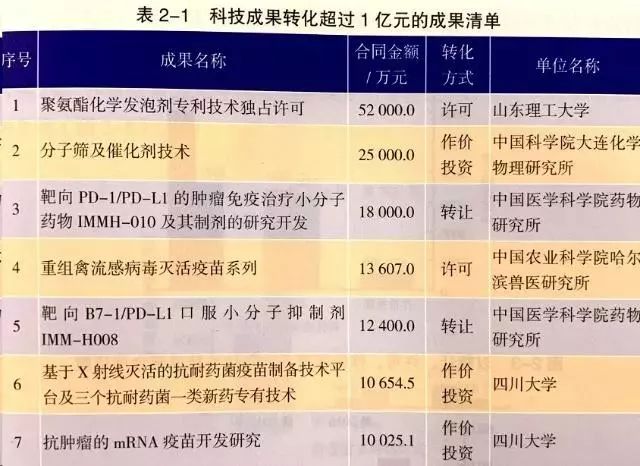 研發(fā)單位瞄準(zhǔn)市場需求,注重科技創(chuàng)新源頭設(shè)計(jì),形成了大量高價值科技成果,在政策利好的大環(huán)境下持續(xù)轉(zhuǎn)化。山東理工大學(xué)“無氯氟聚氨酯化學(xué)發(fā)泡劑”以5.2億元轉(zhuǎn)化,創(chuàng)單項(xiàng)成果轉(zhuǎn)化金額最高紀(jì)錄。中科院工程熱物理所連續(xù)產(chǎn)出高價值科技成果,轉(zhuǎn)化金額1000萬元以上的成果達(dá)9項(xiàng)。中國農(nóng)業(yè)科學(xué)院哈爾濱獸醫(yī)研究所設(shè)立重點(diǎn)產(chǎn)品研發(fā)計(jì)劃,轉(zhuǎn)化滿足產(chǎn)業(yè)需求的高價值成果。