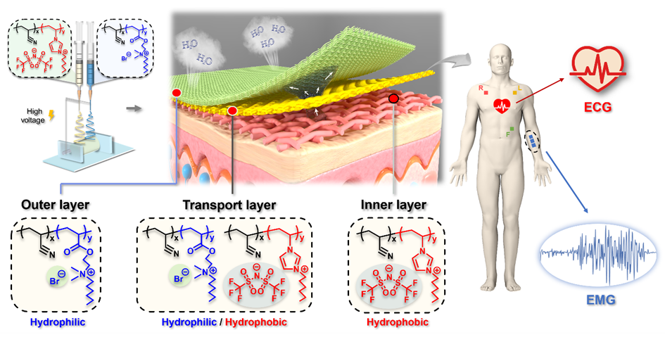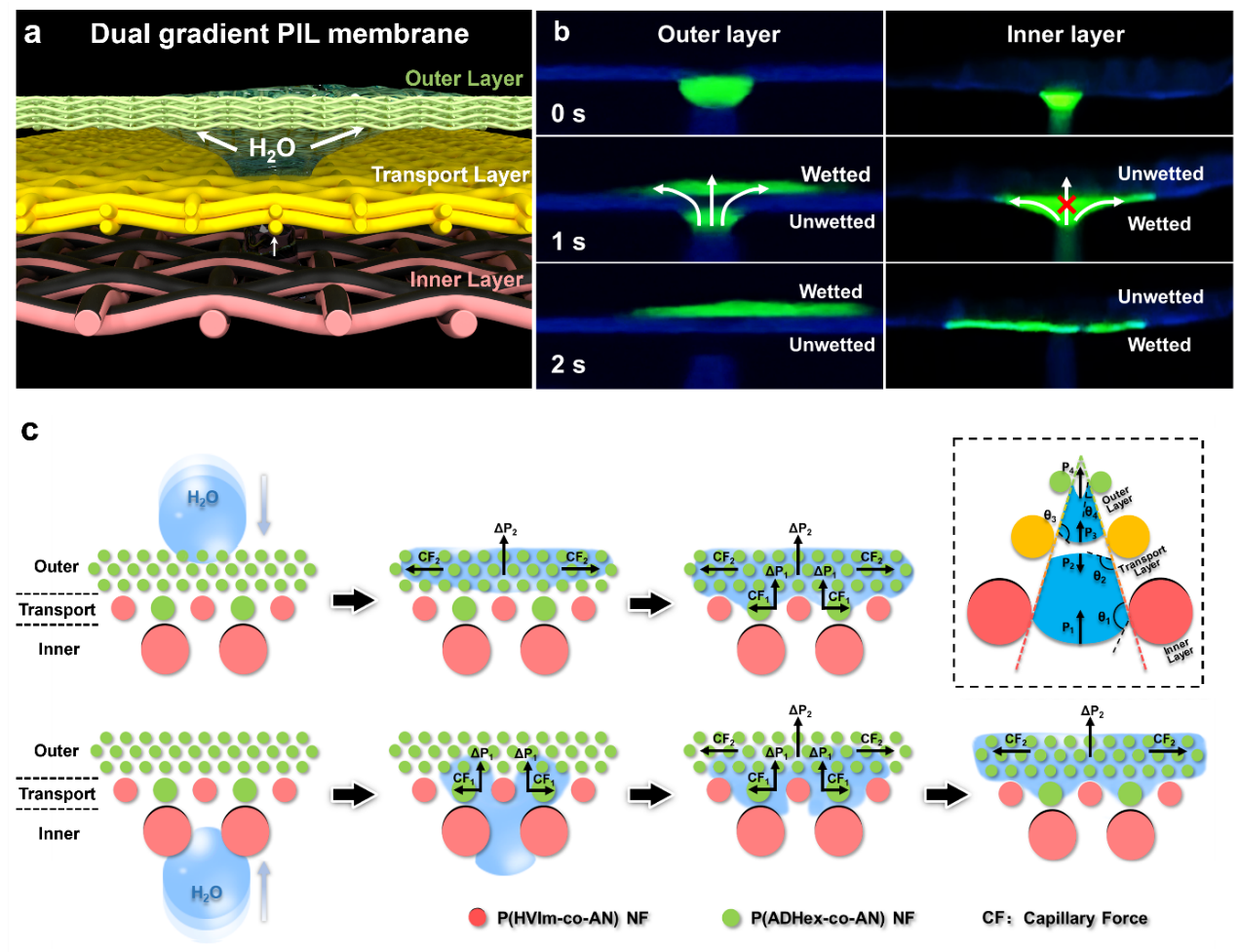 【PIL電子皮膚的定向水分傳輸及透氣透水性能】