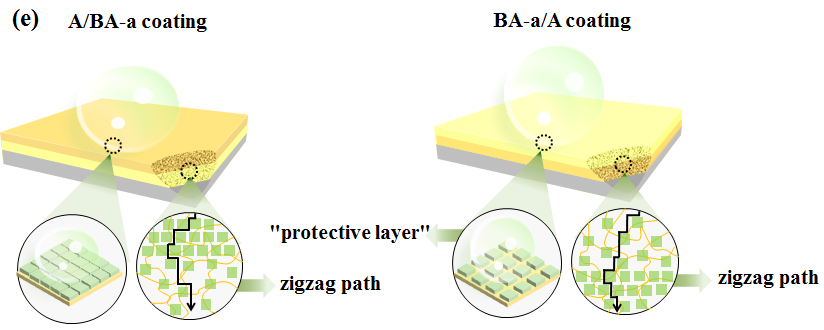 中北大學(xué)先進(jìn)功能樹脂及復(fù)合材料王智教授團(tuán)隊(duì)基于多年的高性能樹脂涂層研究經(jīng)驗(yàn)(RSC advances, 2017, 7(68): 43181-43185; Applied Surface Science, 2019, 481: 374-378; Progress in Organic Coatings, 2020, 147: 105771; Applied Surface Science, 2020, 507: 145168.),提出無機(jī)-有機(jī)互穿結(jié)構(gòu)有利于構(gòu)造堅(jiān)固的超疏水表面;诖耍團(tuán)隊(duì)創(chuàng)新性選擇了粉煤灰合成沸石作為無機(jī)填料,精心設(shè)計(jì)了新型雙層梯度結(jié)構(gòu),研究了其結(jié)構(gòu)與性能的關(guān)系,從而制備了具有超疏水性以及出色的機(jī)械性能和附著力的防腐涂層。相關(guān)成果以“A Fly Ash-derived Polybenzoxazine/Zeolite A Bilayer Coating with Excellent Superhydrophobicity and Corrosion Resistance”為題,被《Progress in Organic Coatings》期刊接收。中北大學(xué)碩士研究生王美晨為第一作者。此研究得到了國家自然科學(xué)基金、山西省重點(diǎn)研發(fā)計(jì)劃等項(xiàng)目的資助支持。