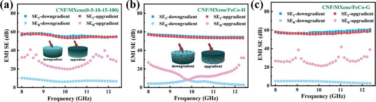 圖2 CNF/MXene(0-5-10-15-100)、CNF/MXene/FeCo-H和CNF/MXene/FeCo-G復(fù)合膜的電磁屏蔽性能