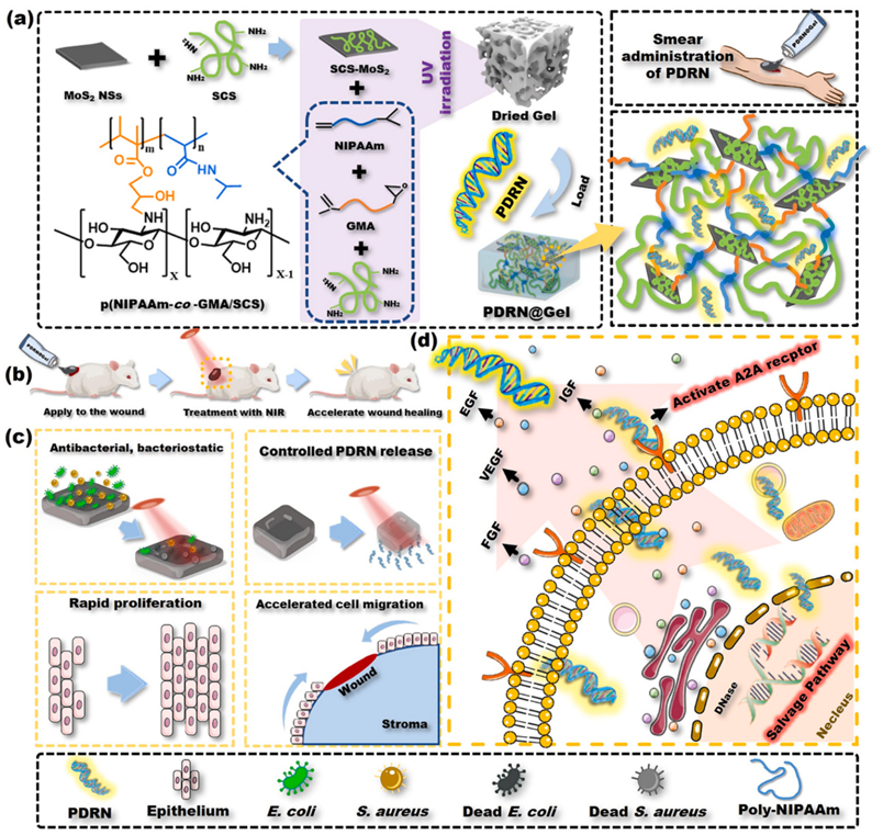 青島大學(xué)叢海林/胡浩團(tuán)隊(duì)《Carbohyd. Polym.》:殼聚糖衍生物交聯(lián)水凝膠 - 控制釋放多聚脫氧核苷酸用于傷口治療