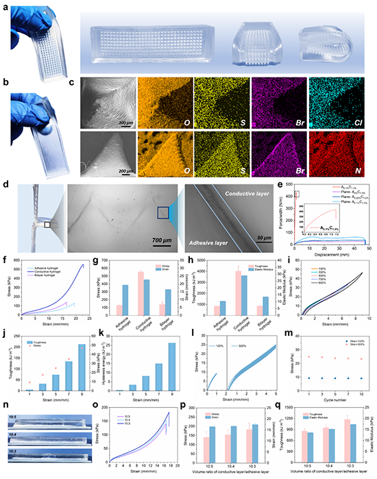 圖3. 雙層水凝膠的粘附機理及粘附表現(xiàn)。