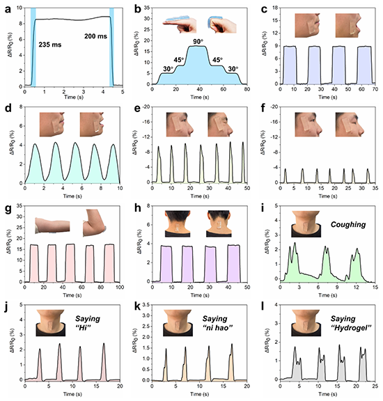 圖6. 雙層水凝膠用于監(jiān)測生理信號。