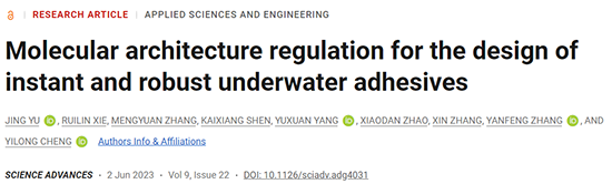 西安交大成一龍課題組《Sci. Adv.》: 分子結(jié)構(gòu)精確調(diào)控構(gòu)建高分子濕粘接劑