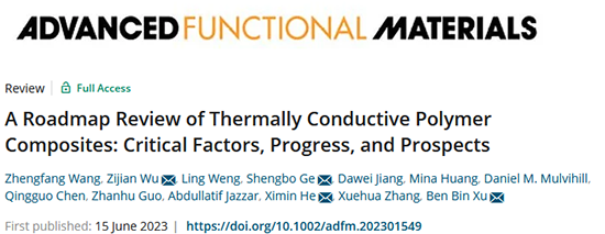 近日,哈爾濱理工大學(xué)吳子劍副教授等人在Advanced Functional Materials上發(fā)表題為“A Roadmap Review of Thermally Conductive Polymer Composites: Critical Factors, Progress, and Prospects”的綜述文章。文章第一作者為哈爾濱理工大學(xué)碩士研究生王正芳,第一通訊作者為哈爾濱理工大學(xué)吳子劍副教授,英國(guó)諾森比亞大學(xué)Ben Bin Xu教授、UCLA賀曦敏教授、南京林業(yè)大學(xué)葛省波副教授為本文的共同通訊作者,哈爾濱理工大學(xué)為第一完成單位。