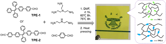 固態(tài)有機(jī)熒光材料在光電器件、傳感、數(shù)據(jù)存儲(chǔ)和編碼等方面具有廣闊的應(yīng)用前景。AIE活性聚合物,即具有聚集誘導(dǎo)發(fā)光效應(yīng)的聚合物在固態(tài)下發(fā)光能力強(qiáng),在上述應(yīng)用中表現(xiàn)出高發(fā)射效率、結(jié)構(gòu)可定制以及良好的可加工性等優(yōu)點(diǎn)。目前大多數(shù)AIE活性聚合物為熱塑性材料,機(jī)械強(qiáng)度較弱,在高溫下(如光電應(yīng)用)會(huì)進(jìn)一步受損,對(duì)其性能產(chǎn)生負(fù)面影響并縮短其使用壽命。同時(shí),聚合物往往難以降解,對(duì)環(huán)境產(chǎn)生較大的影響。因此,制備環(huán)保可降解,且具有較良好力學(xué)性能的AIE活性聚合物具有重要意義。