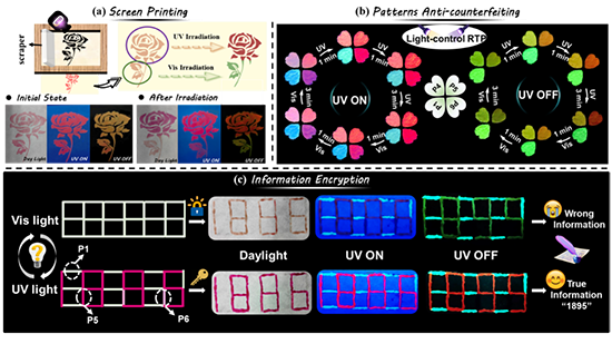 刺激響應(yīng)性室溫磷光(RTP)材料由于其獨(dú)特的光電特性和對光、pH、機(jī)械力或溫度的不同響應(yīng)性能備受關(guān)注。然而,大多數(shù)報(bào)道的材料主要為需要苛刻生長條件的單晶,或摻雜聚合物體系。相對而言,多刺激響應(yīng)性的非摻雜聚合物RTP材料鮮見報(bào)道,主要原因在于合成困難、對不同刺激的可控性差等。