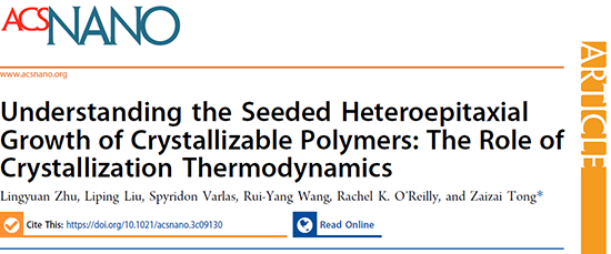 在先前的研究中主要集中在同質(zhì)附生結(jié)晶,即結(jié)晶聚合物的化學(xué)組分完全相同,因此很少?gòu)?/span>高分子結(jié)晶的角度去深入討論。而異質(zhì)附生結(jié)晶由于結(jié)晶聚合物和晶體基底之間的晶格不匹配、鏈段不相容性等因素,晶體基底和附生晶體之間的界面自由能增大,導(dǎo)致異相成核困難。因此從高分子結(jié)晶角度揭示包括結(jié)晶熱力學(xué)因素如晶格匹配和鏈段相容性,結(jié)晶動(dòng)力學(xué)因素如結(jié)晶溫度等控制的異相成核過程,是調(diào)控異質(zhì)附生結(jié)晶驅(qū)動(dòng)自組裝的關(guān)鍵。在過去的研究中,童再再課題組揭示了結(jié)晶動(dòng)力學(xué)是控制異質(zhì)附生結(jié)晶的關(guān)鍵,即低溫有利于附生結(jié)晶而高溫會(huì)抑制附生結(jié)晶,并闡明了附生晶體的厚度需小于種子晶體的厚度是發(fā)生異質(zhì)附生結(jié)晶的必要條件(Nat. Chem. 2023, 15, 824-831; Macromolecules 2023, 56, 5984-5992)。
