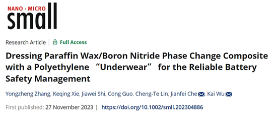 南理工車(chē)劍飛/川大吳凱團(tuán)隊(duì) Small:一種兼具良好熱傳導(dǎo)和安全可靠性的新型復(fù)合相變材料用于電池安全管理