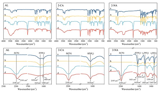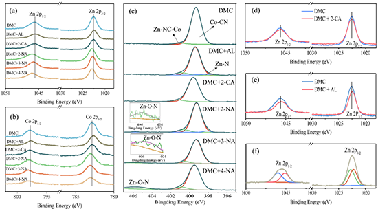 圖2. XPS研究DMC與苯胺 (AL), 2-氯苯胺 (2-CA), 2-硝基苯胺(2-NA), 3-硝基苯胺 (3-NA) 和 4-硝基苯胺(4-NA)的相互作用。