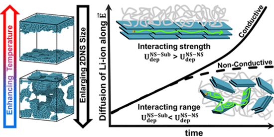 隨著高性能薄膜材料和柔性電子器件等技術(shù)產(chǎn)業(yè)的不斷發(fā)展,市場(chǎng)對(duì)于以聚合物為基體材料的性能和功能要求也在日益提高。在這一背景下,通過(guò)向高分子基體中添加補(bǔ)強(qiáng)填料,可以獲得兼具多功能和高性能的高分子復(fù)合材料。在眾多填料中,二維納米片填料由于其豐富的種類(lèi)和易修飾的界面而成為當(dāng)前研究的焦點(diǎn)。尤其值得注意的是,當(dāng)二維納米片填料以有序方式填充聚合物時(shí),可以使復(fù)合材料在特定方向上獲得極大的性能和功能增強(qiáng)。然而,二維納米片具有一定柔性,單個(gè)二維片具有非對(duì)稱(chēng)的幾何特征,導(dǎo)致實(shí)現(xiàn)二維納米片在高分子網(wǎng)絡(luò)中的有序自組裝填充往往需要復(fù)雜的手段和設(shè)備條件,如何簡(jiǎn)化這一過(guò)程是當(dāng)前研究中的一個(gè)重要挑戰(zhàn)。此外,目前相關(guān)領(lǐng)域的理論研究相對(duì)匱乏,如何從微觀動(dòng)力學(xué)角度理解二維納米片與高分子共混后的聚集自組裝行為仍待深入探討。
