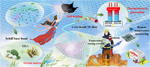 武漢紡織大學于志財團隊 Adv. Fiber Mater.:基于動態(tài)共價鍵自修復熱電纖維的制備及無源溫度傳感應用
