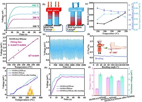 圖5. 基于自愈合同軸熱電纖維的高溫報警傳感器的溫度傳感性能