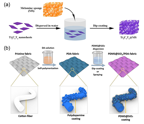 圖1:具有多級微納結(jié)構(gòu)的超疏水光熱材料