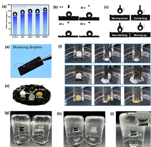 圖2. 傳感器疏水自潔性和透氣性測(cè)試結(jié)果