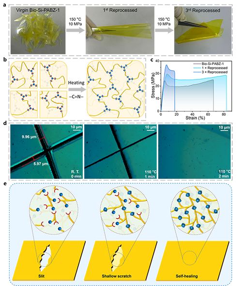 Jia, Z., Wang, H., Yu, P.*, He, H., Huang, Q., Hong, W.; Liu, C.; Shi, Y.; Wang, J.; Xin, Y.; Jia, X.; Ma, J.; Yu, B*. Soft-rigid construction of mechanically robust, thermally stable, and self-healing polyimine networks with strongly recyclable adhesion. Small, 2024, 2406821.