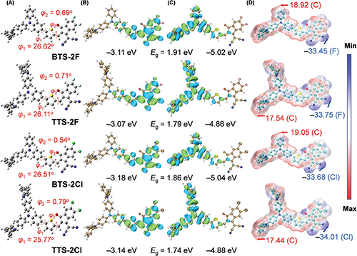 圖3 BTS-2F、BTS-2Cl、TTS-2F和TTS-2Cl理論計(jì)算結(jié)果