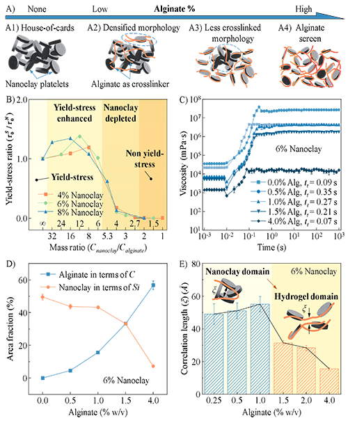 圖2 納米粒子與海藻酸鈉相互作用的機(jī)理,微觀結(jié)構(gòu)變化,及流變特性的變化。