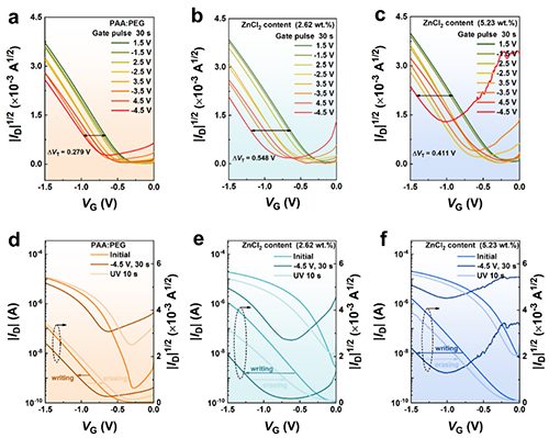 圖3. 多級非易失性低電壓OFET存儲器的柔性器件結構和電學特性