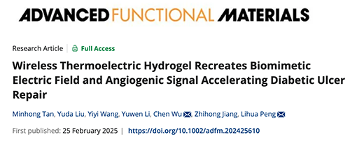 Wireless Thermoelectric Hydrogel Recreates Biomimetic Electric Field and Angiogenic Signal Accelerating Diabetic Ulcer Repair.Advanced Functional Materials, 2025, 2425610.