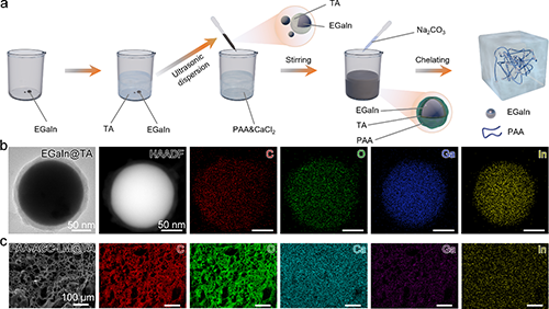 圖1. 液態(tài)金屬基導(dǎo)電水凝膠的制備機(jī)理