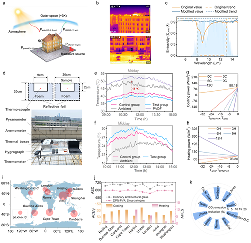 圖2. 同位素水凝膠智能窗戶(hù)外溫度測(cè)試,驗(yàn)證了其溫度自適應(yīng)優(yōu)勢(shì)。