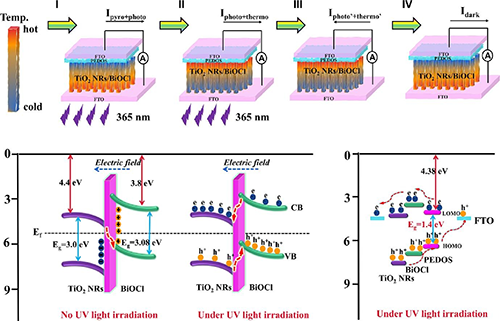 1.唐新生,如仙古麗·加瑪力,吐爾遜·阿不都熱依木*:熱釋電效應(yīng)增強(qiáng)了TiO2 NRs/BiOCl// PEDOS異質(zhì)結(jié)在紫外光電探測器中的性能