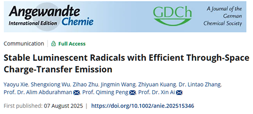 相關(guān)研究成果以“Stable Luminescent Radicals with Efficient Through-Space Charge-Transfer Emission”為題,作為VIP論文發(fā)表在《Angew. Chem. Int. Ed.》上,也被選入Editors'''' Choice: Spotlights。海南大學(xué)謝遙宇和吳勝雄為論文的共同第一作者,海南大學(xué)艾心教授、吉林大學(xué)阿力木教授和南京工業(yè)大學(xué)彭其明教授為論文的共同通訊作者。本研究得到了國(guó)家重點(diǎn)研發(fā)計(jì)劃(2023YFB3608902)、國(guó)家自然科學(xué)基金(22265009, 22105054, 62475116, 62422404, 52103210)、海南大學(xué)協(xié)同創(chuàng)新中心項(xiàng)目(XTCX2022XXC02)、海南省“南海新星”科技創(chuàng)新人才平臺(tái)項(xiàng)目(NHXXRCXM202307)、海南大學(xué)啟動(dòng)基金以及吉林省科技廳(20230101363JC)等項(xiàng)目的支持。