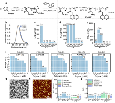 圖2:聚(2-噁唑啉)和膠束的合成、體外抗真菌活性和協(xié)同抗真菌活性研究。