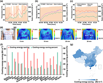 圖6. PE-MSZ非織造布的多場景制冷性能與能源節(jié)約潛力